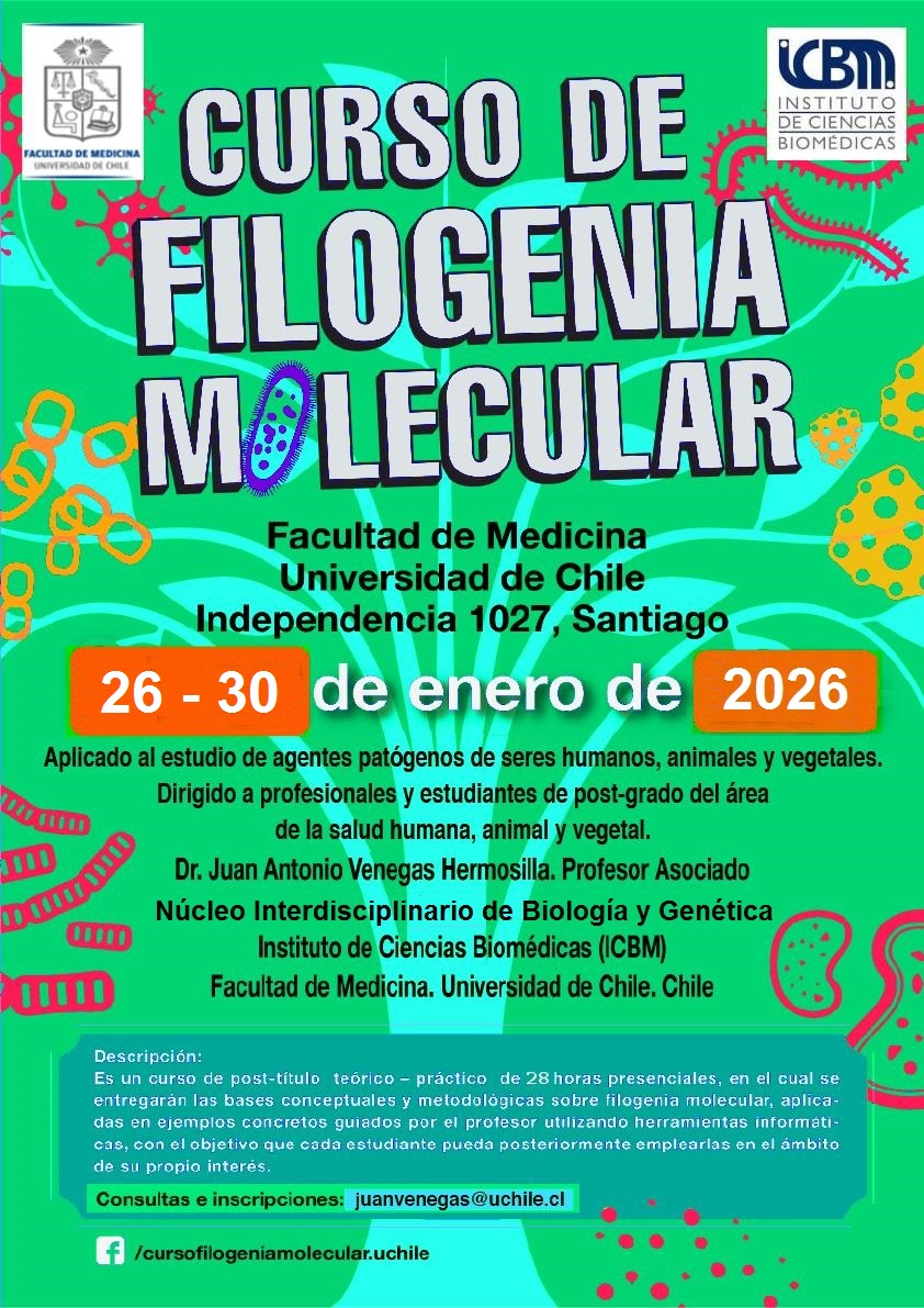 La Facultad de Medicina de la Universidad de Chile invita a profesionales e investigadores de las áreas de salud humana, animal y vegetal a participar en el curso: «Filogenia Molecular Aplicada al Estudio de Agentes Patogénicos».